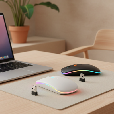 Яркая, практичная оптическая мышь с ресивером USB для беспроводного радиочастотного соединения и специальной функцией DPI (800/1200/1600 DPI). Кнопка DPI позволяет быстро менять чувствительность мыши, что очень удобно во время игры. Сверхлегкая благодаря эргономичному дизайну. Внутри аккумулятор для многократного использования, который позволяет вам не беспокоиться о том, что гаджет разрядится, ведь мышкой можно пользоваться даже в процессе зарядки. Работает от аккумулятора. Совместима с операционными системами Windows. Есть 2 варианта подсветки мышки: 1) ее можно выключить, 2) подстветка на мышке меняется автоматически, определенный цвет не фиксирутеся. - Подсветка логотипа достигается при помощи гравировки - Радиочастотная беспроводная мышь - Частота соединения: 2.4G. - Радиус действия до 10 м. - DPI (количество точек на дюйм): 1600